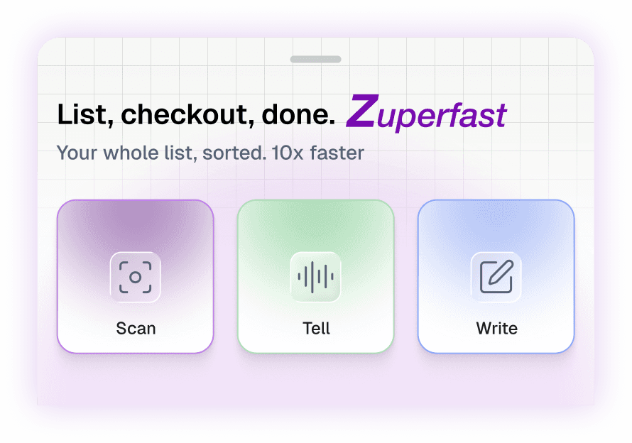 Your grocery list, your language. Messy, quick, and zuperfast.